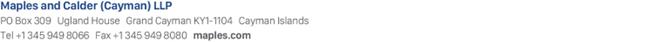 | 1.3 | the register of directors and officers of the Company maintained at its registered office in the Cayman Islands, as at the date of this opinion letter. |
